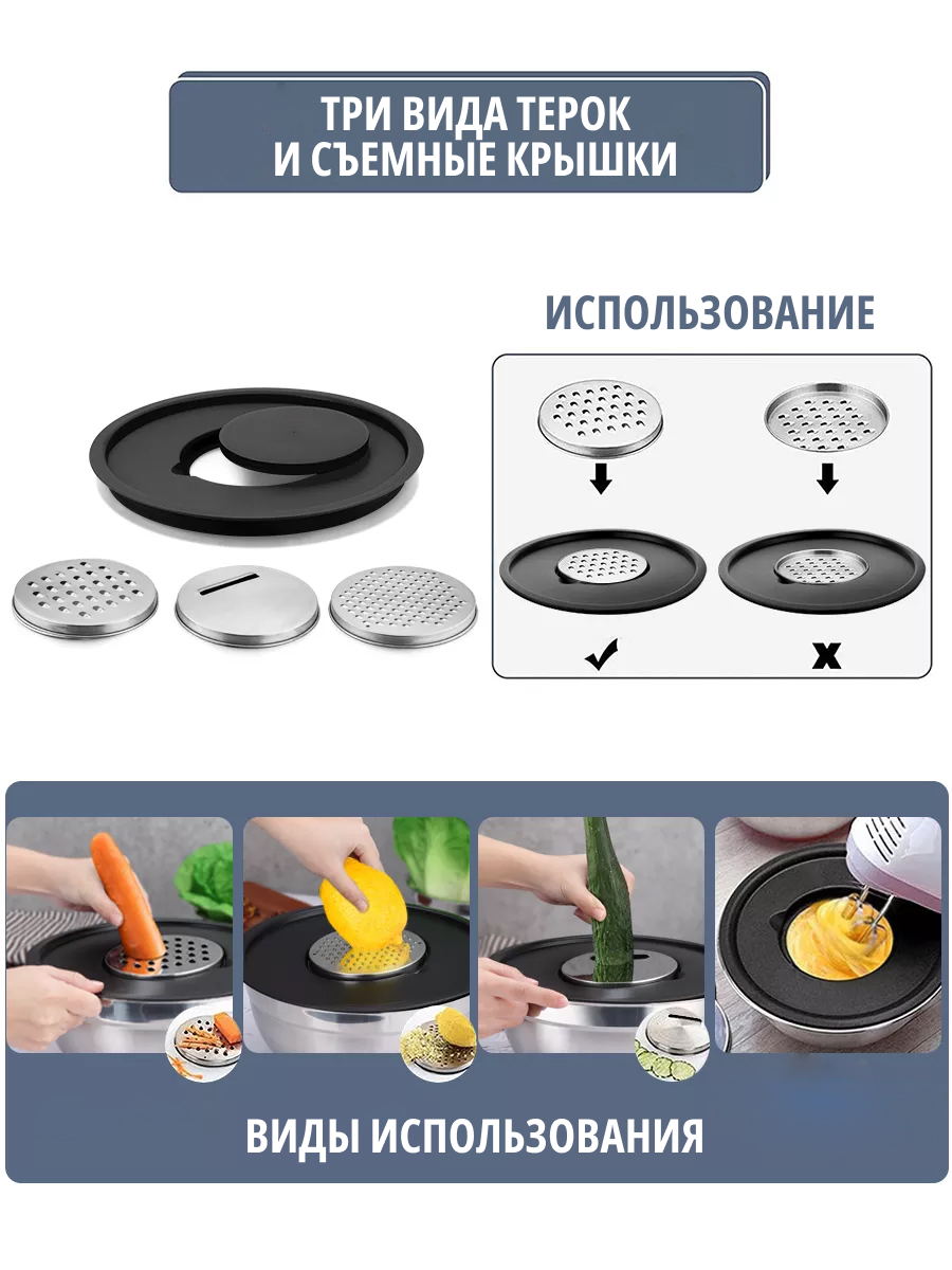 Металлический набор мисок с крышками и тёрками — это удобное решение для повседневной готовки и хранения продуктов.